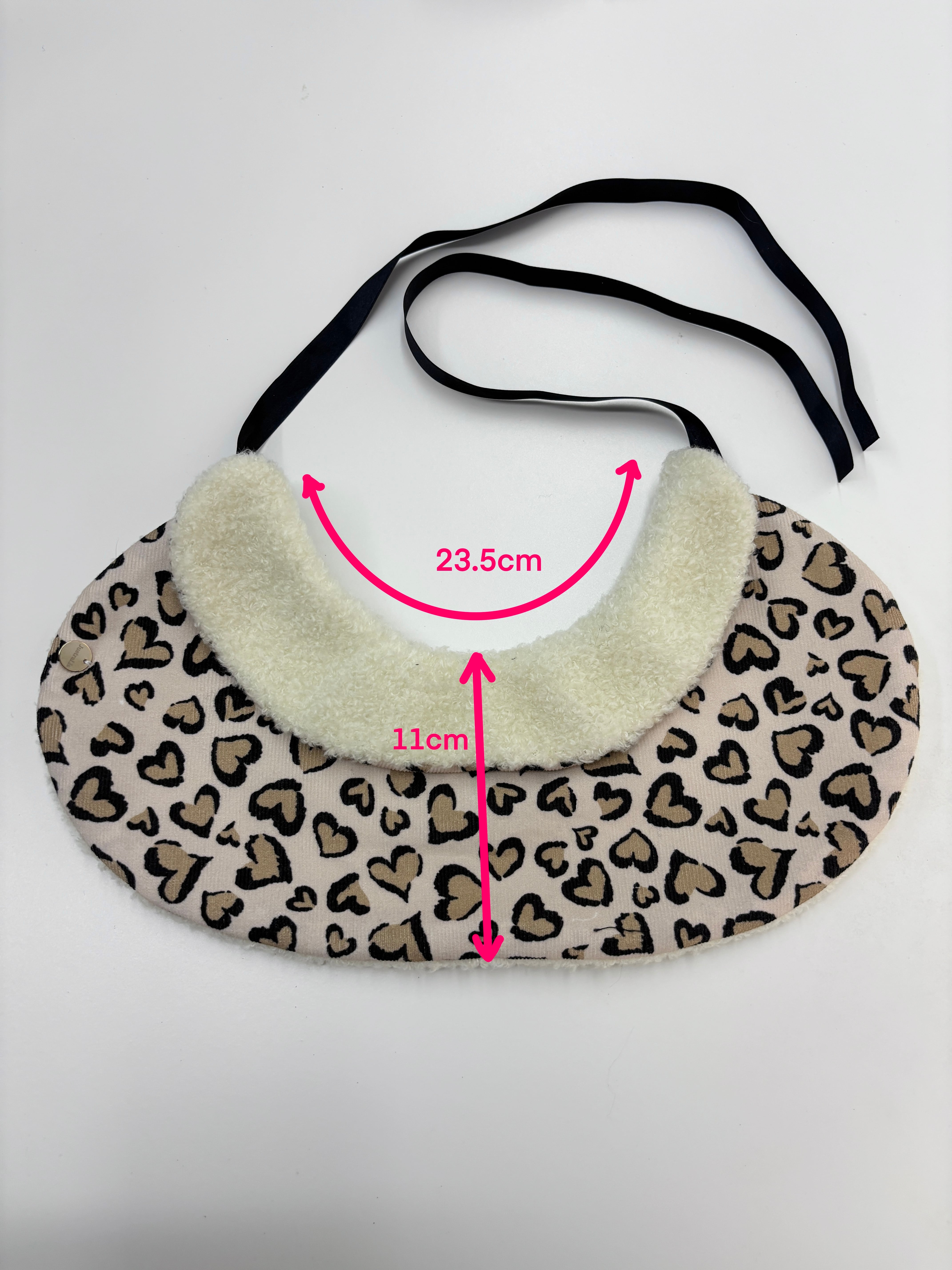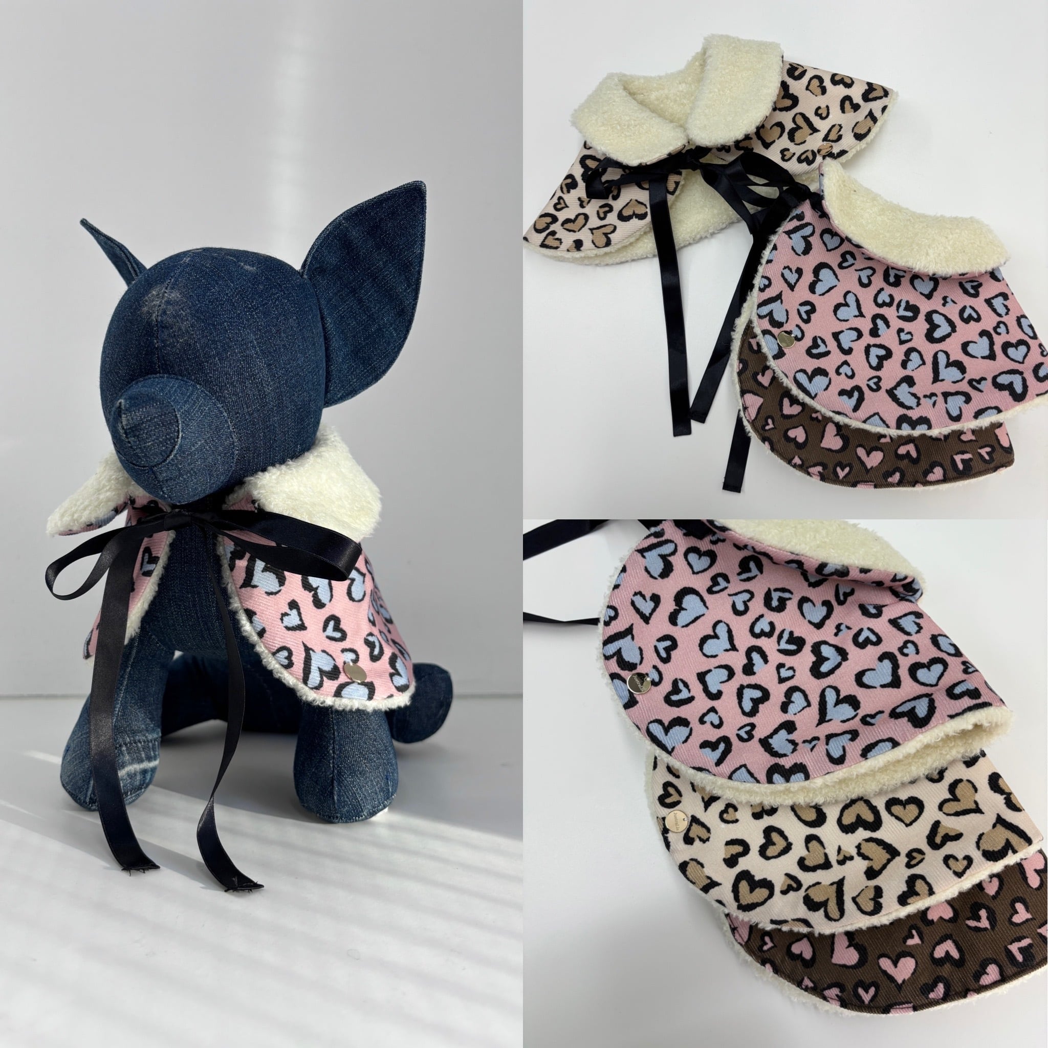 首周りはリボンで結ぶ仕様の為記載のサイズよりも大きいワンちゃんもある程度調整が可能です。