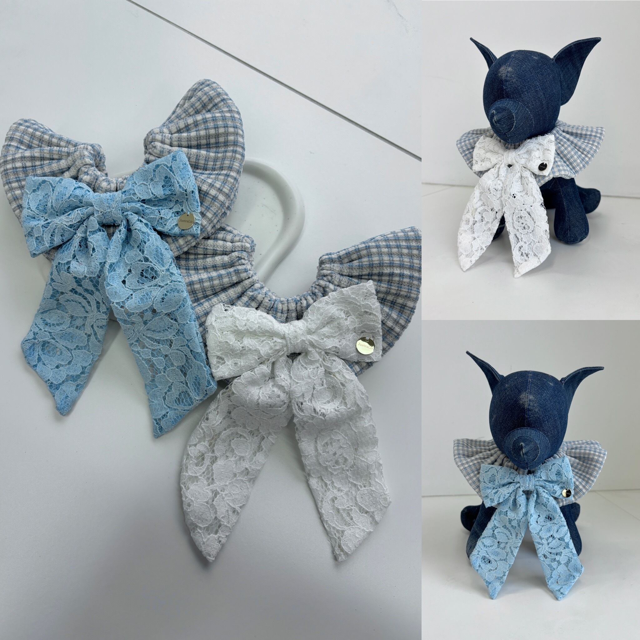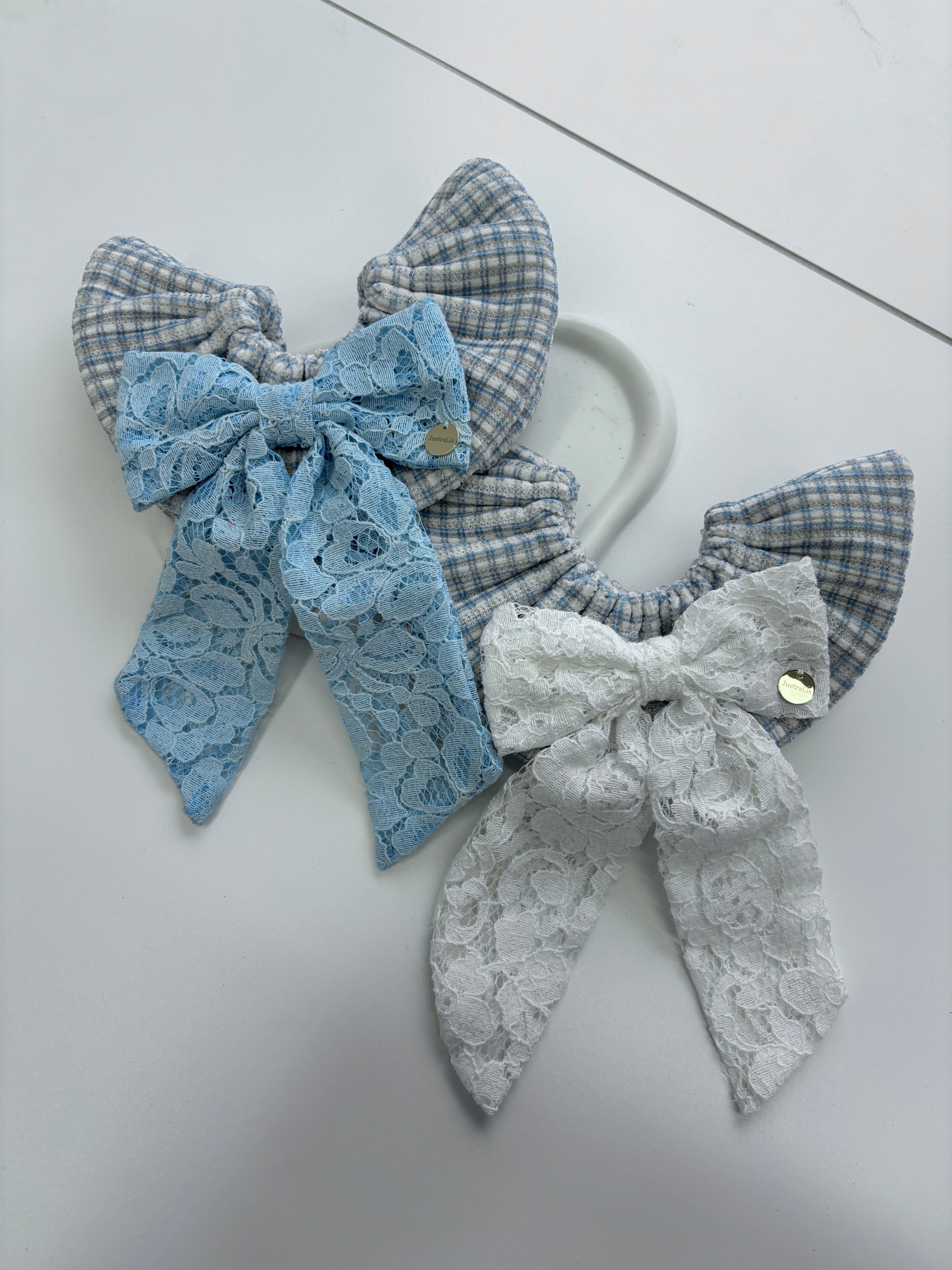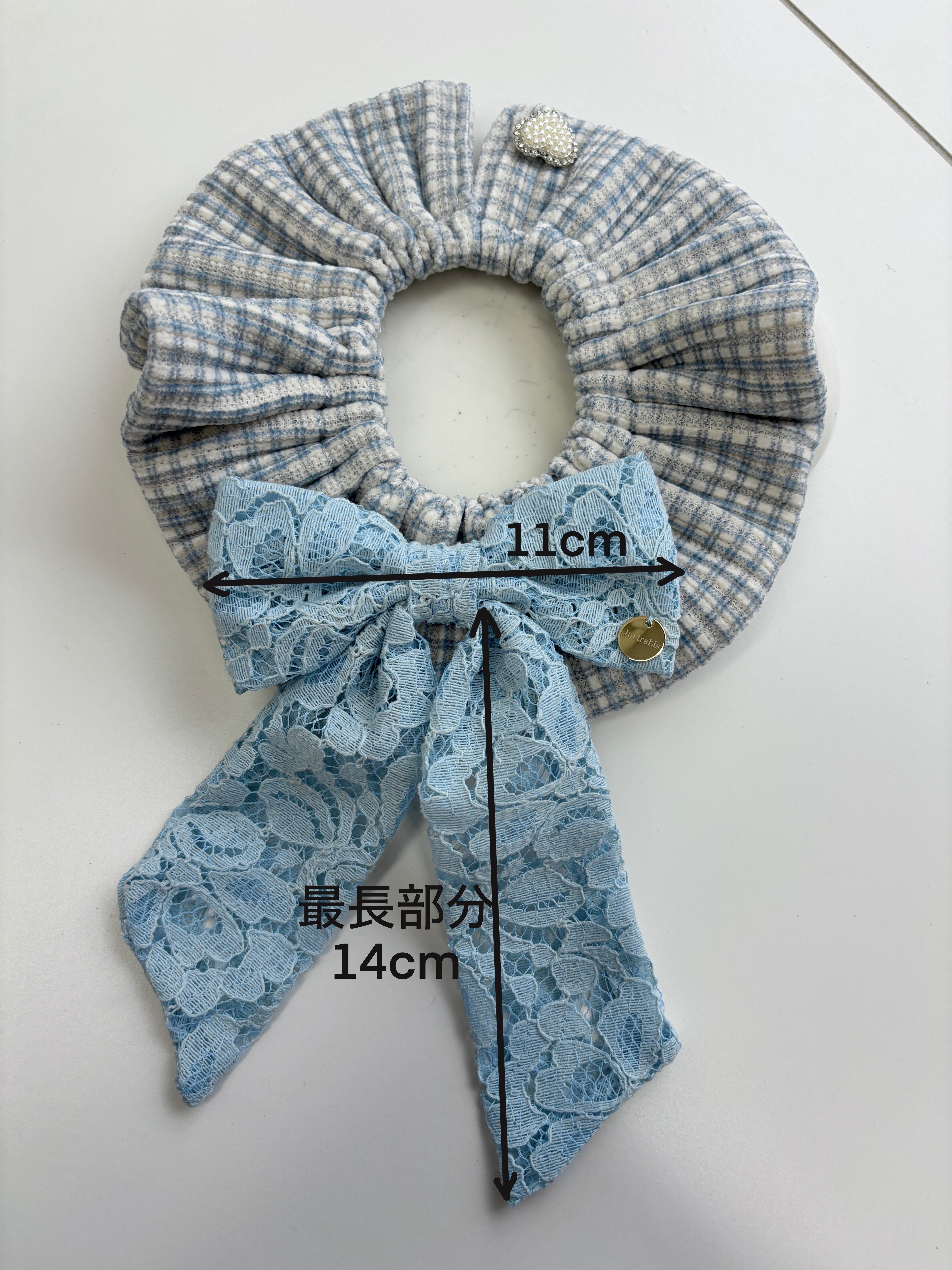 ギンガムチェックブルーレーシーりぼんケープ