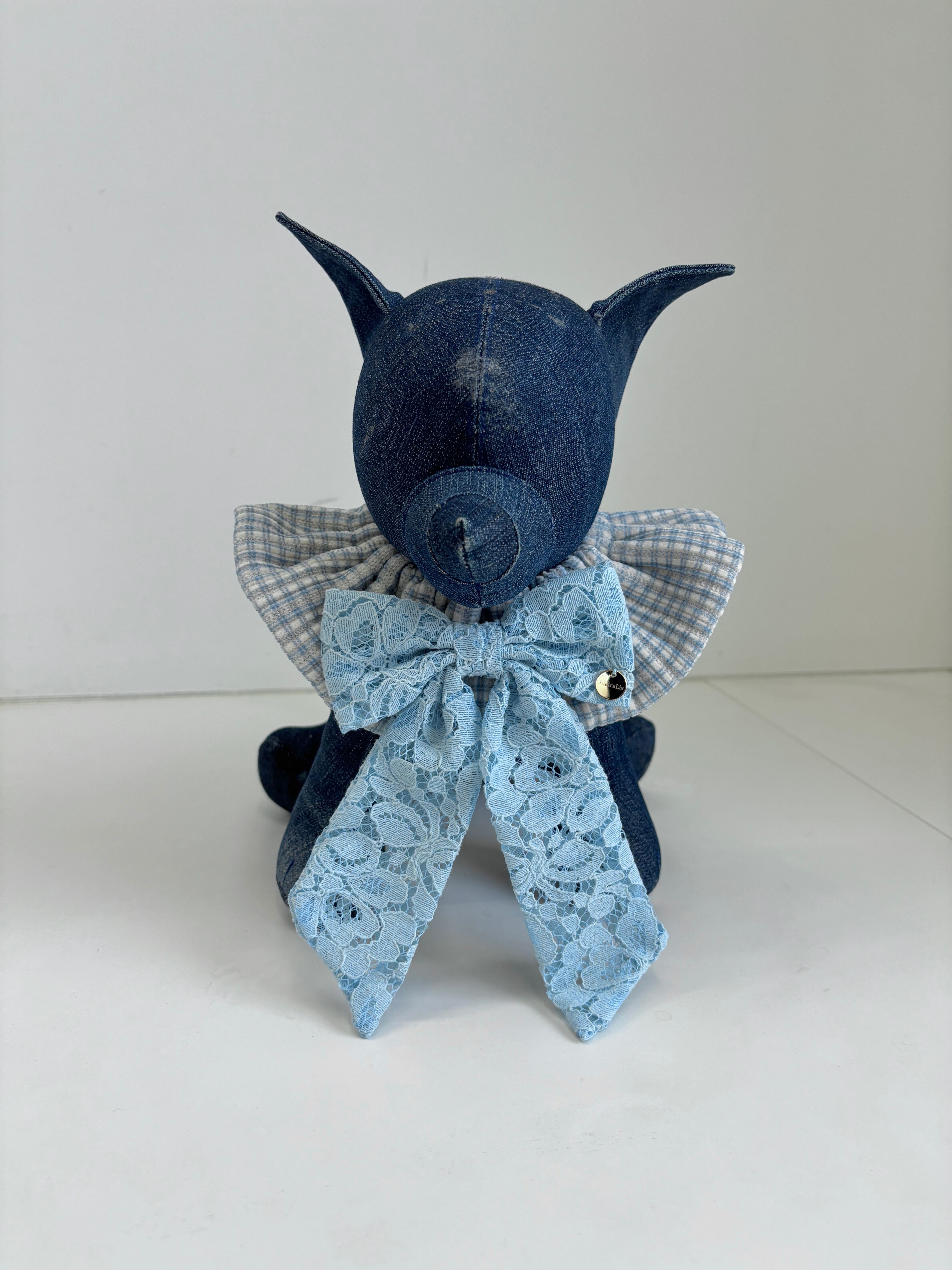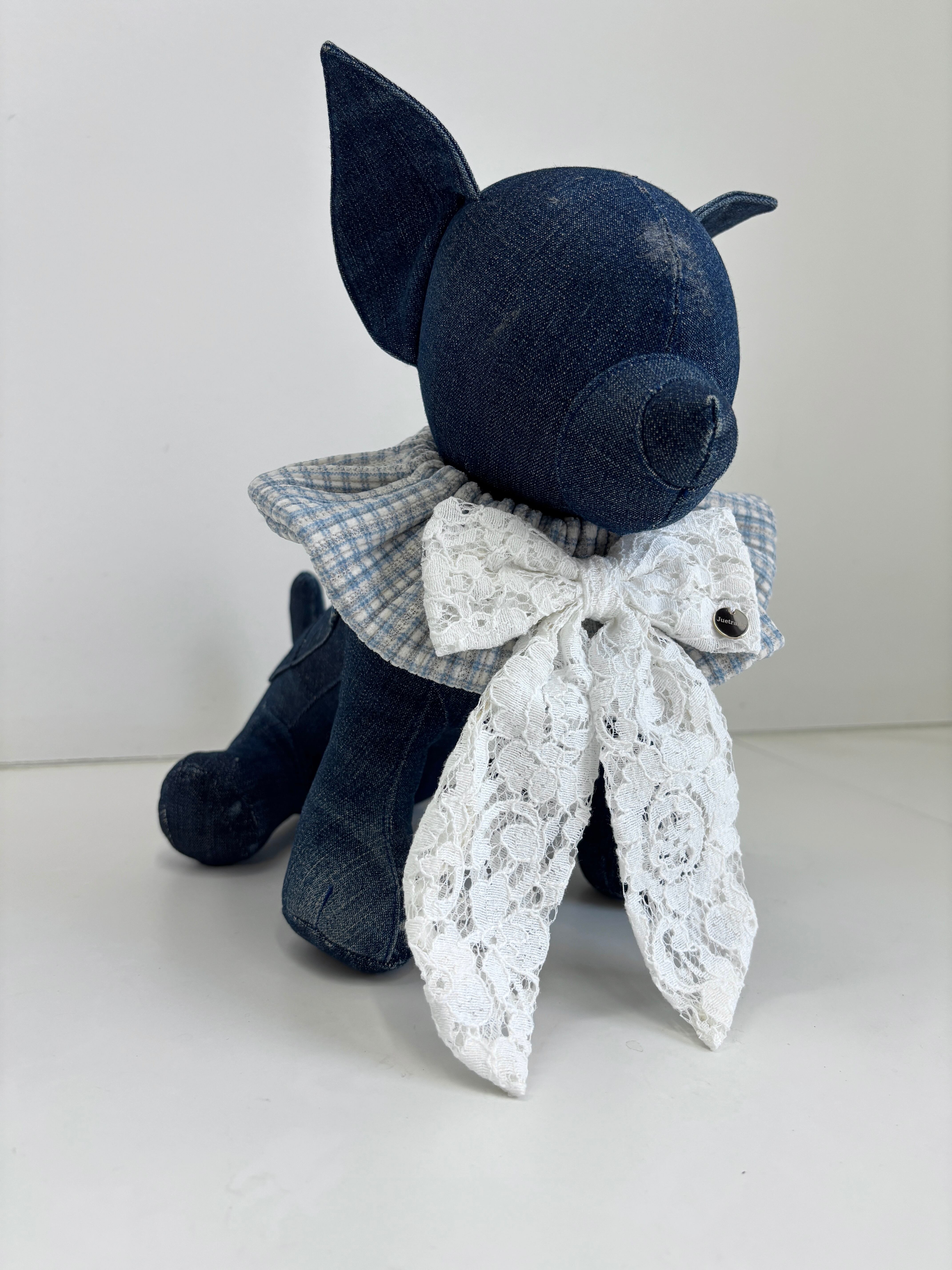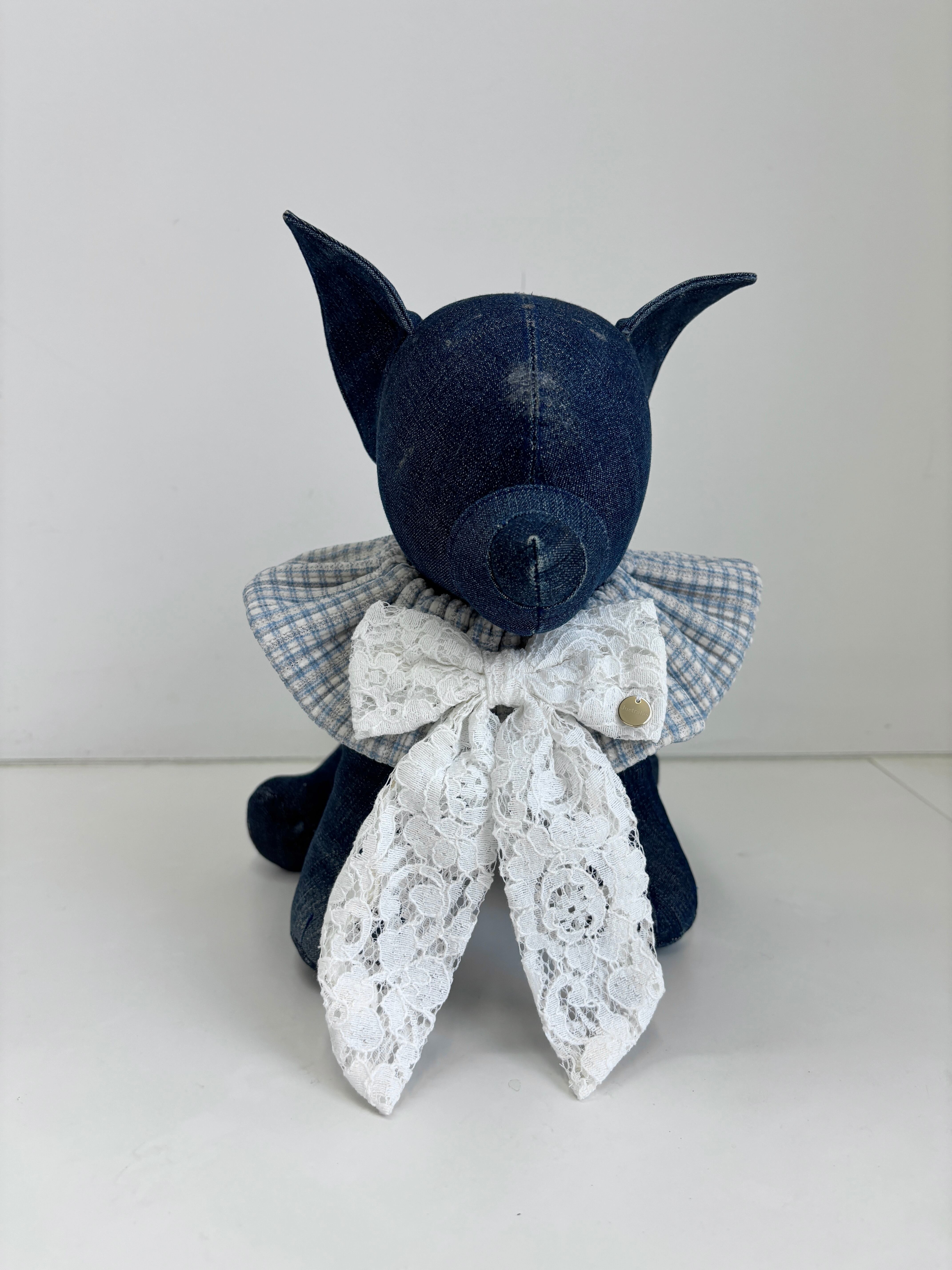 ギンガムチェックブルーレーシーりぼんケープ