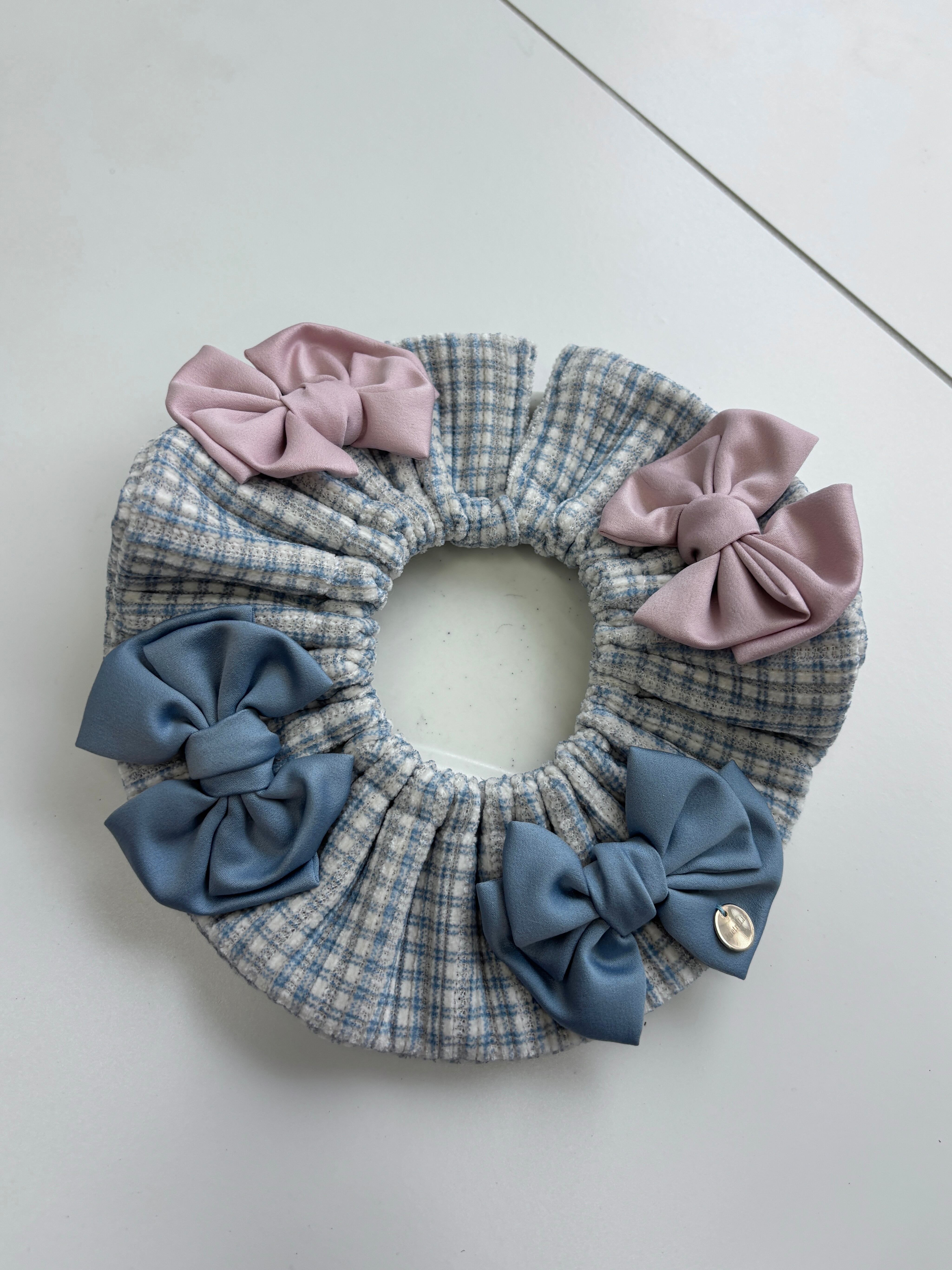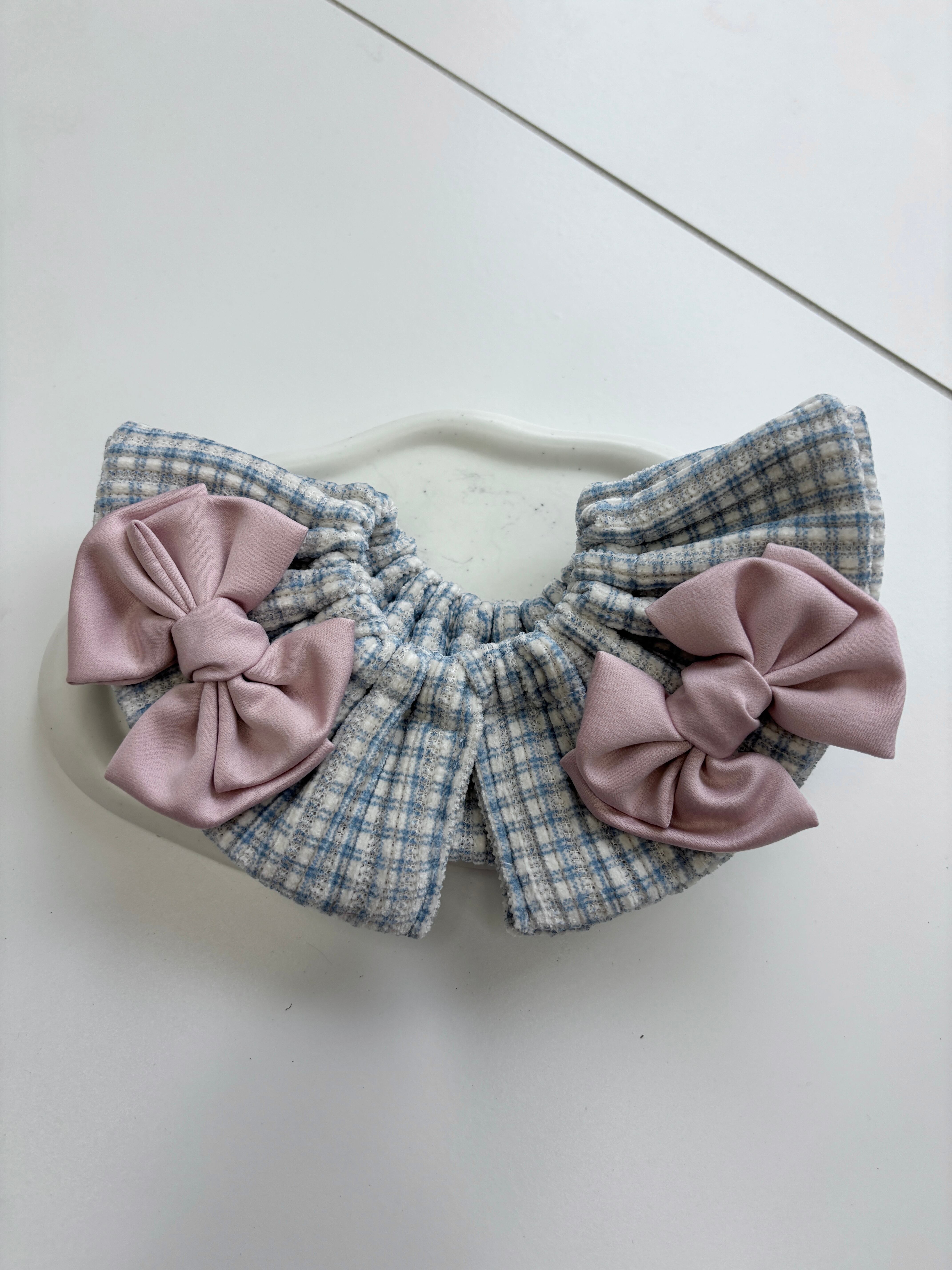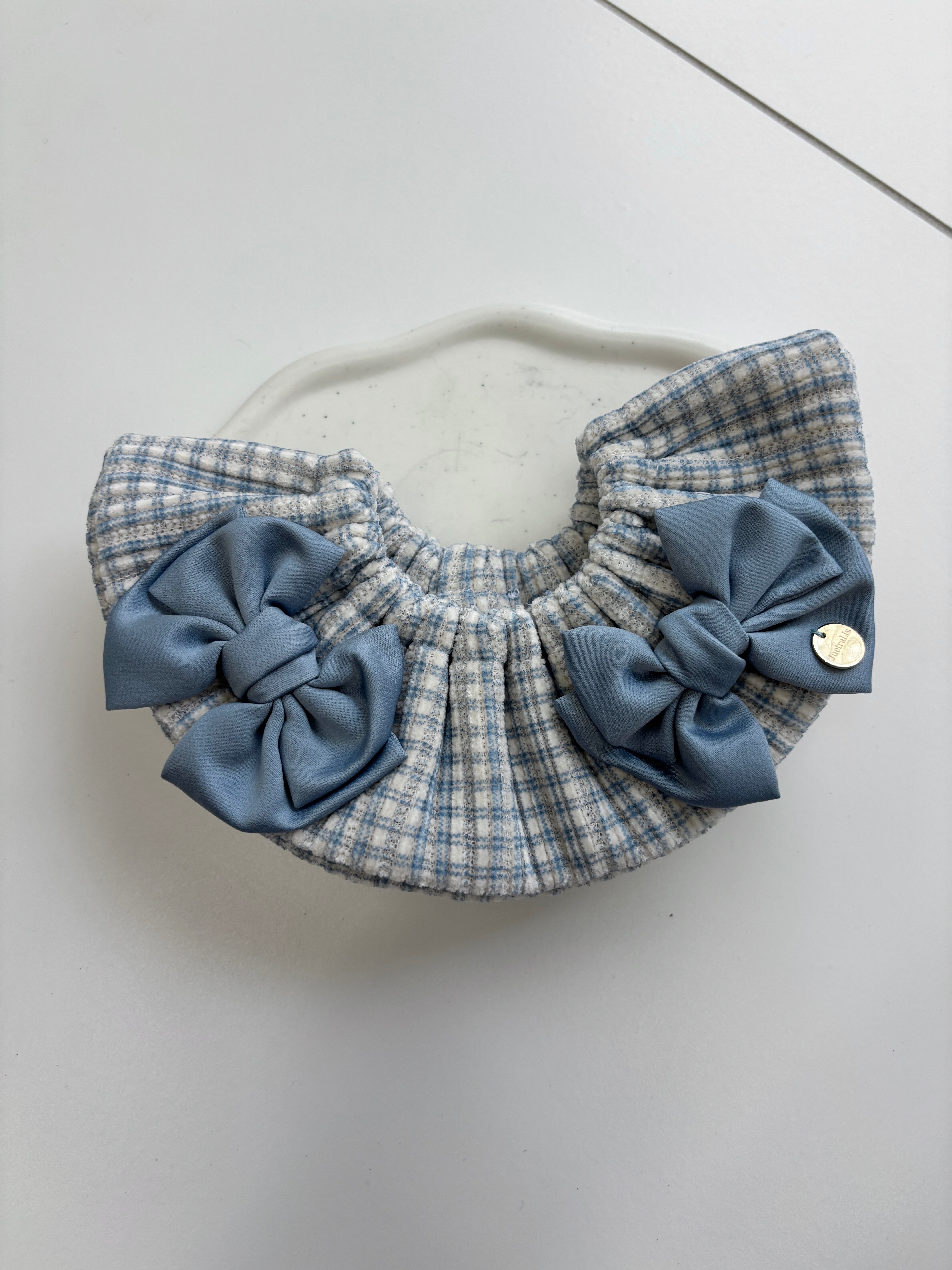 ギンガムチェックブルーWリボンケープ