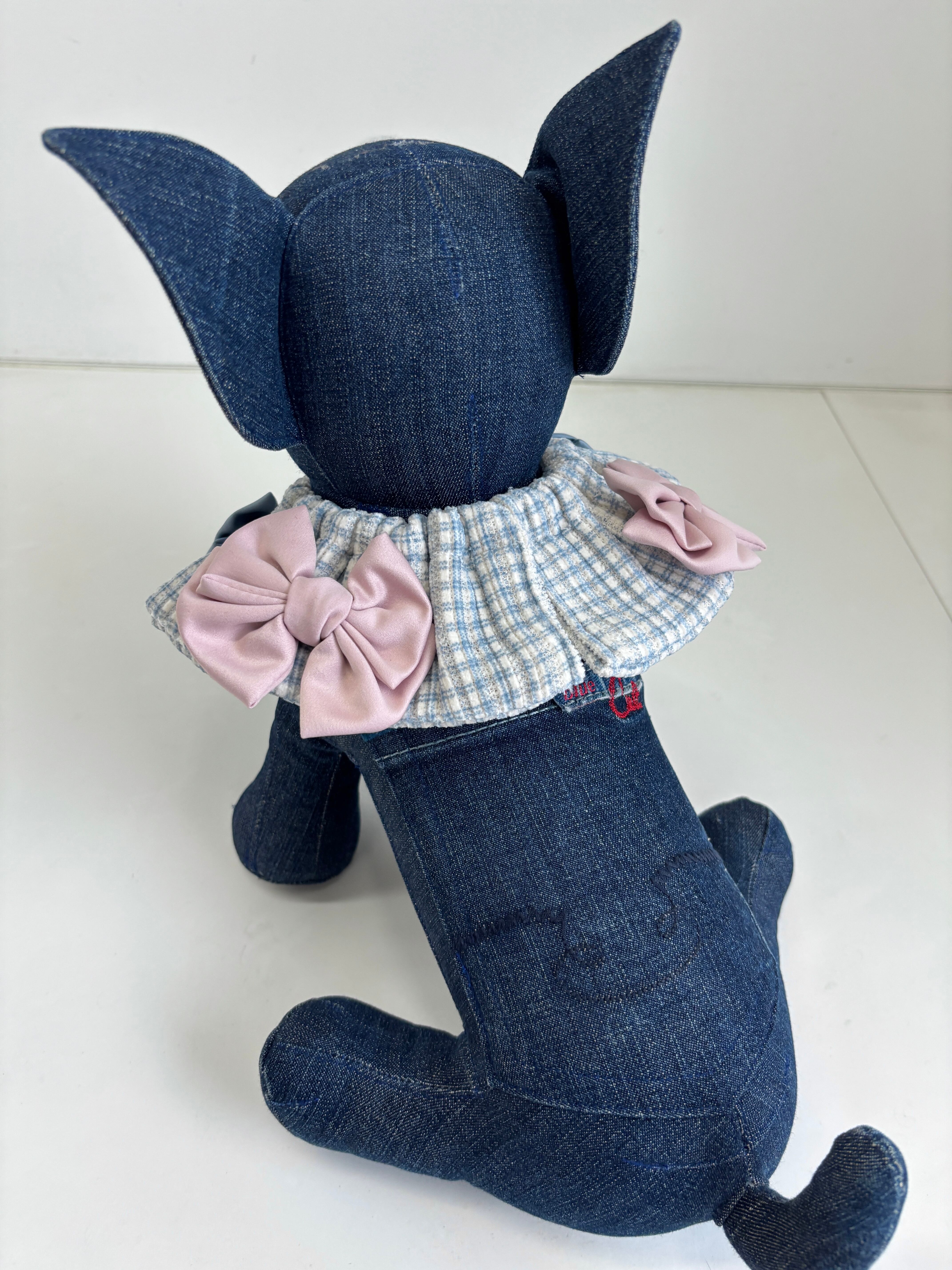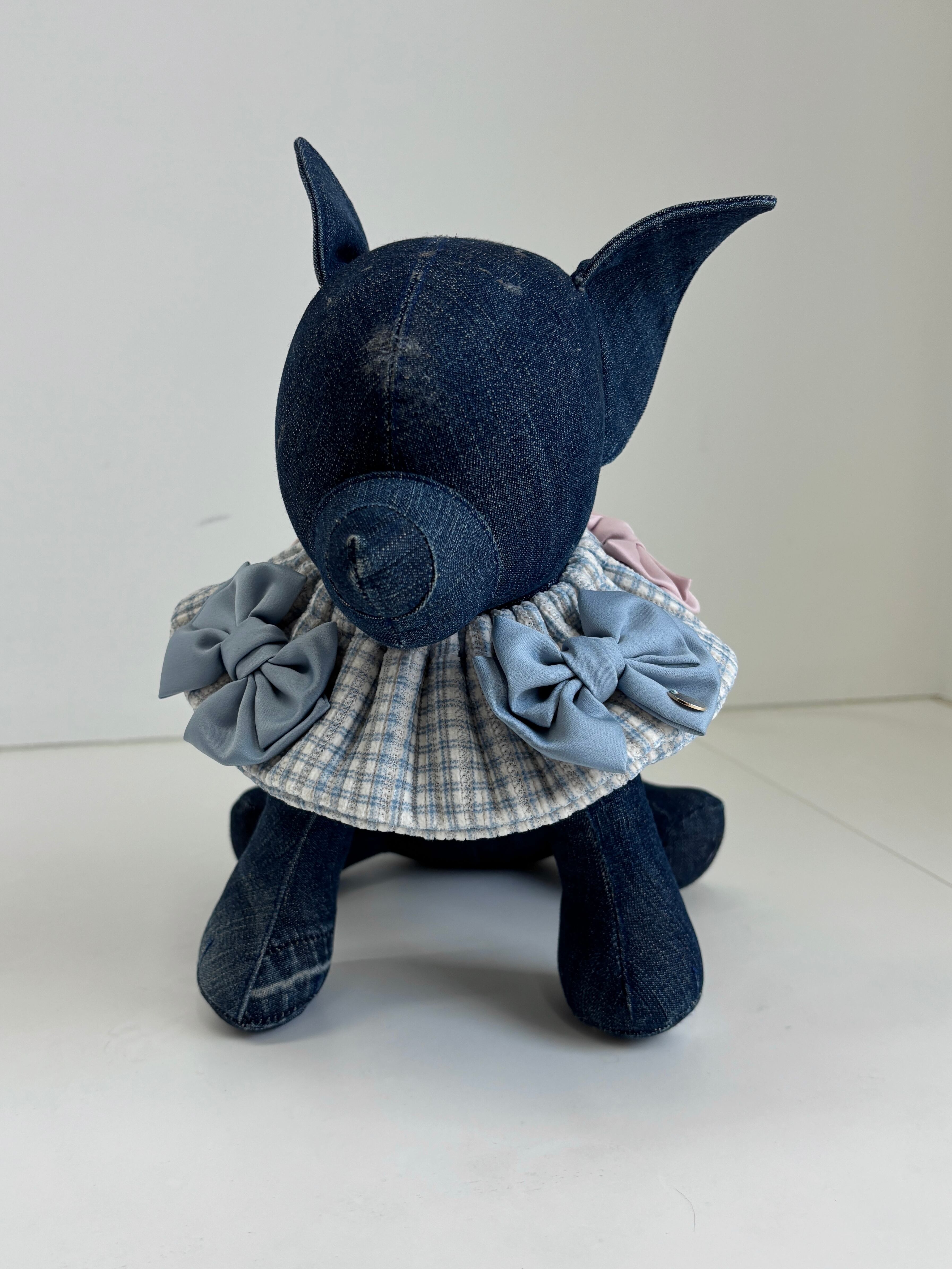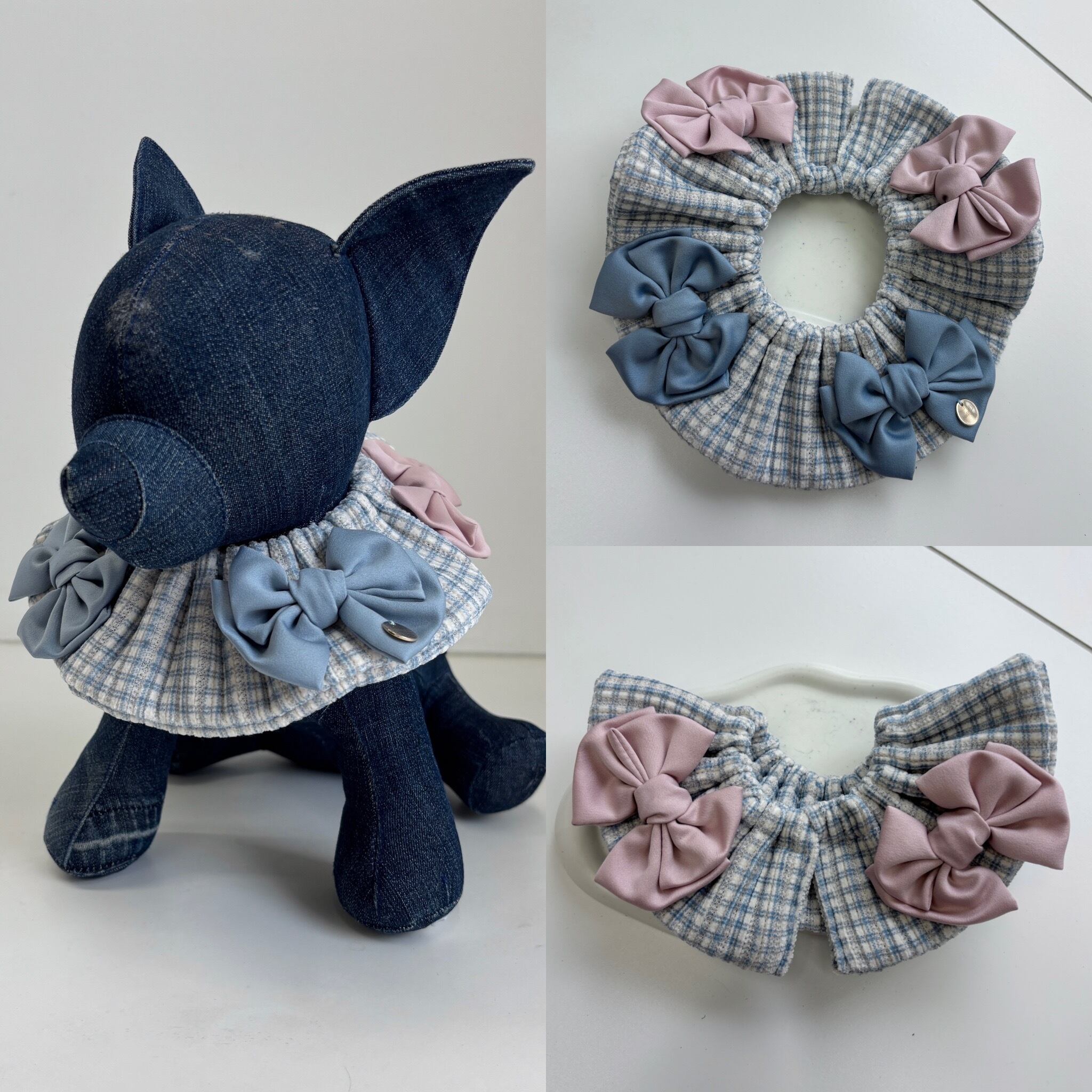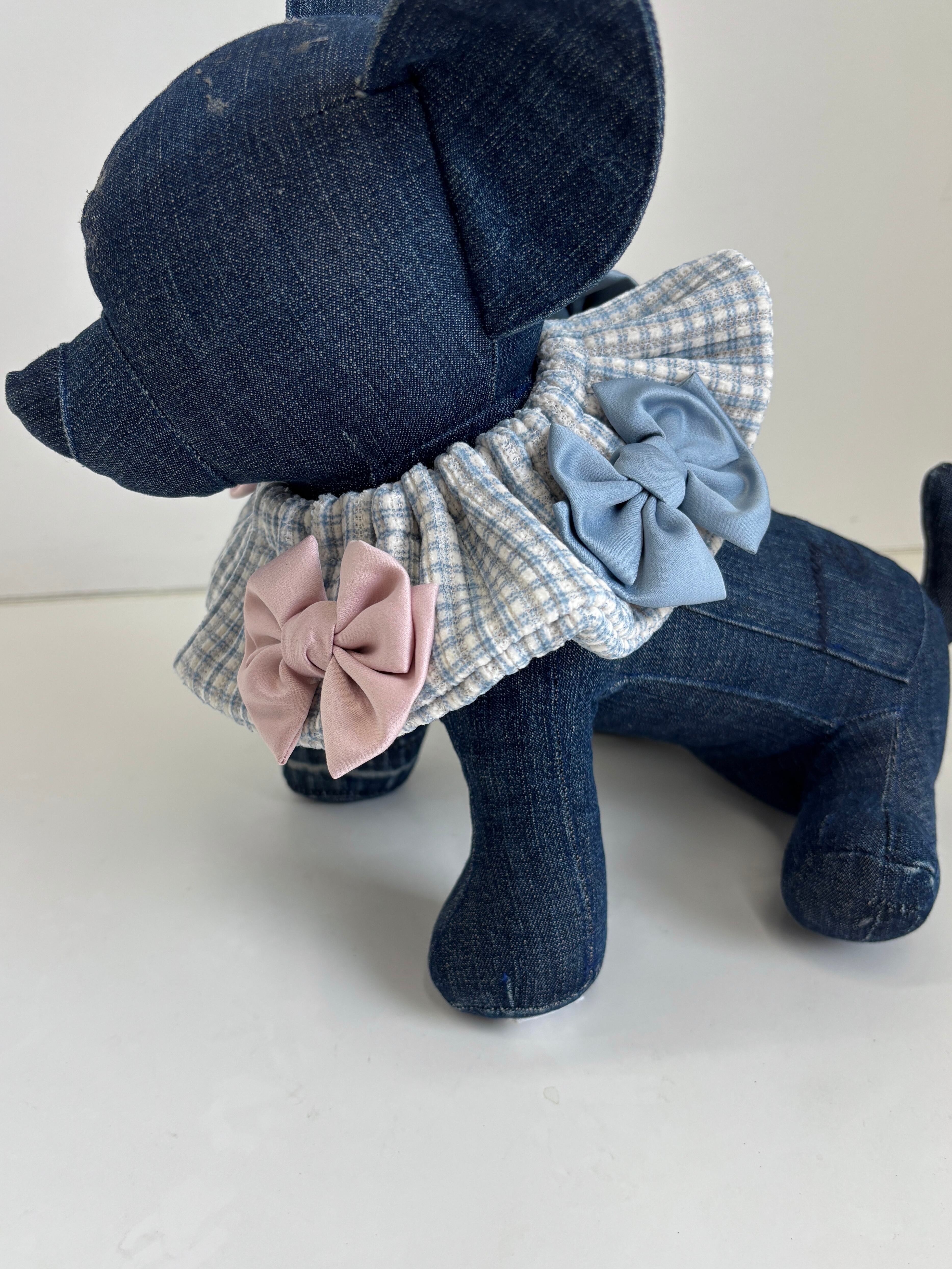 ギンガムチェックブルーWリボンケープ